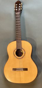Das mit der Grande Nylon war nicht ganz einfach, denn ich bin mit den neuen Instrumenten nicht rechtzeitig fertig geworden. Deswegen hat mir der sehr geschätzte Kollege Christian Pauli (der vernünftigerweise keinen Facebook-Account besitzt – chapeau!) seine Grande Nylon geliehen. Besonderheit: Es handelt sich um ein Linkshändermodell