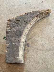 Das ist noch ein Stück des Ausgangsmaterials der Decke – sichtbar von vielen Jahrzehnten intensiver Benutzung gezeichnet.